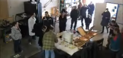 Last weekend I stopped down at EMS to work on a quick project. I’ve seen soda/beer can art before but I’ve never made anything myself. My original idea was to build an airplane but I ultimately decided to go with a pinwheel for simplicity’s sake. I did some basic research by looking up pinwheels online to see how they usually look. Then I stopped at the local Wal-Mart for supplies and got to work! While I could have built this project at home, it was fun to stop down at EMS and get some work done while hanging out with other members working on their projects.