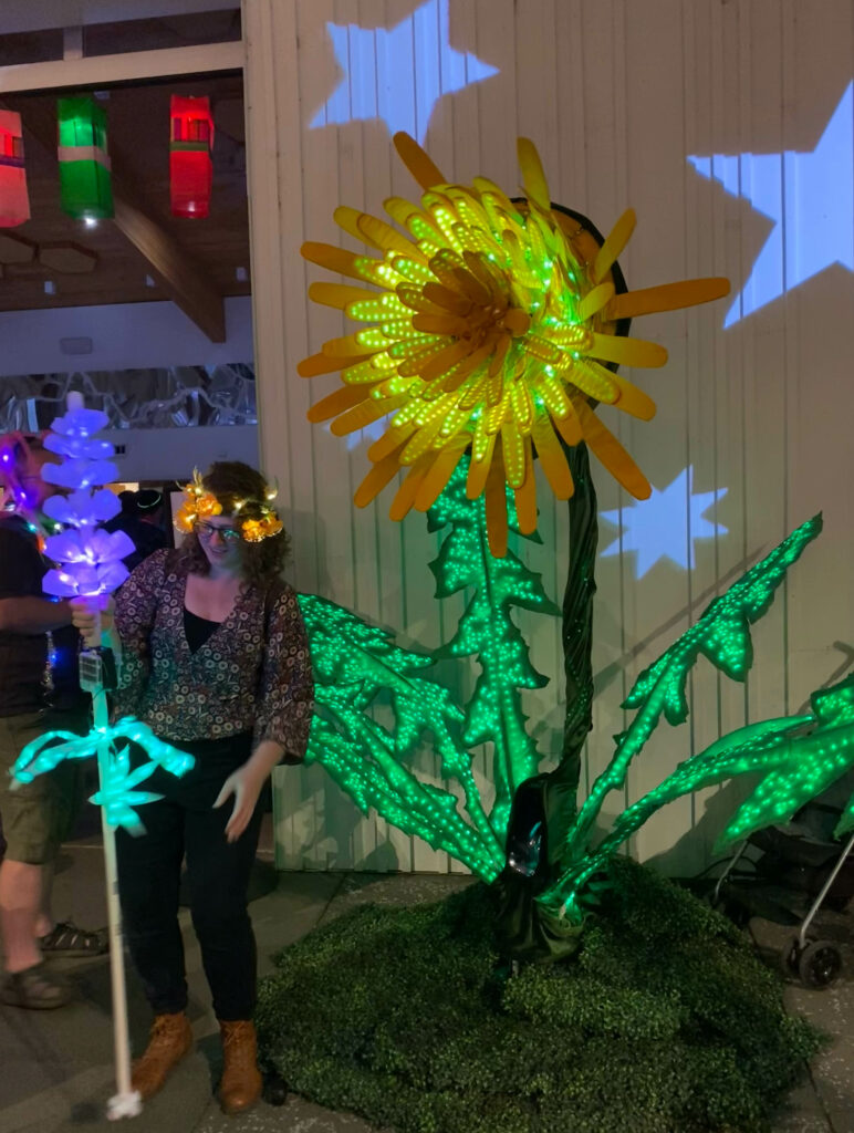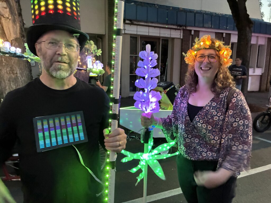 Leading up to the event we tabled with past- and future- S.L.U.G. queens and SHIFT Cycles at the downtown Art Walk. We put on workshops with the BRiGHT Parade at MECCA and Lookout for participants to come and get help from our low-voltage heroes, advising folks on how to illuminate their costumes and floats.